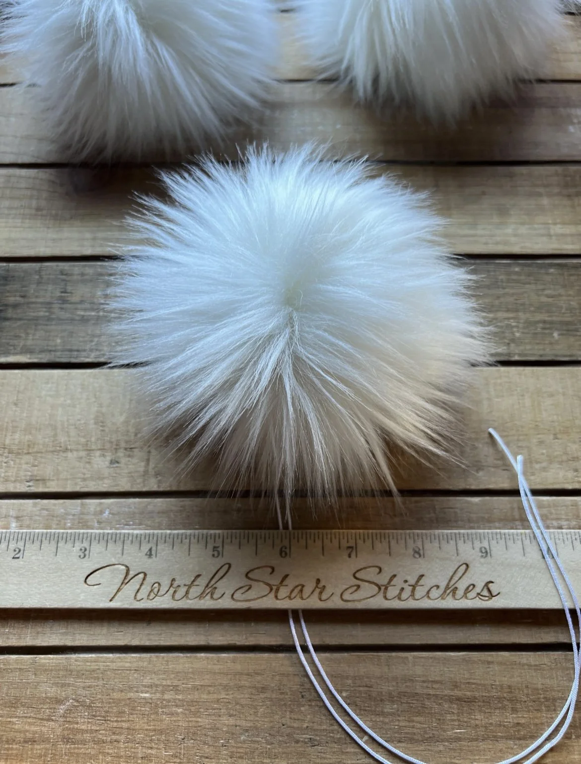 Gray Wolf Faux Fur Pom Pom, Black and Gray Long Pile Faux Fur, Gray Pom Pom